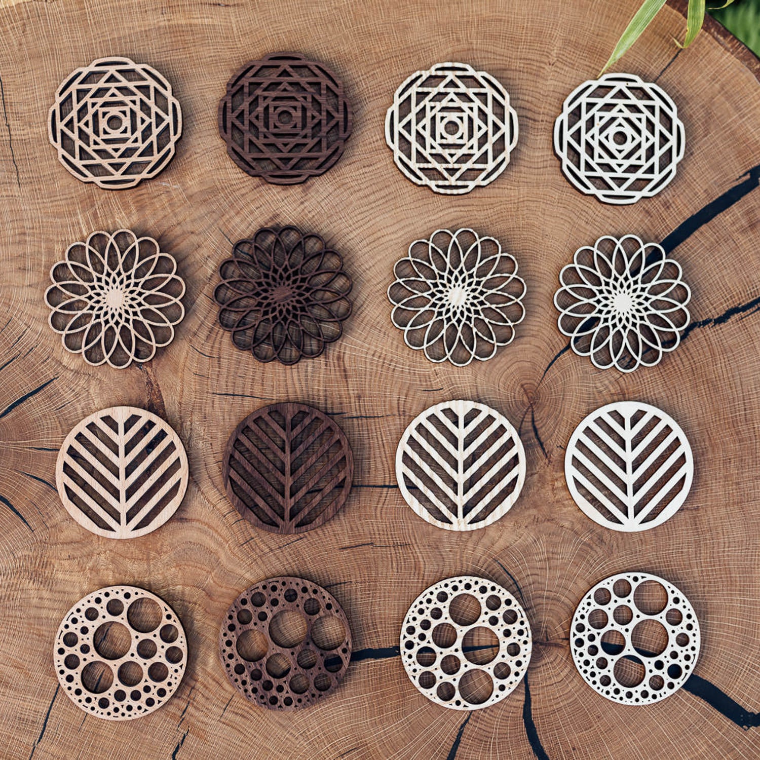 Natürlich schöne Untersetzer für Gläser und Tassen aus Sägefurnier.