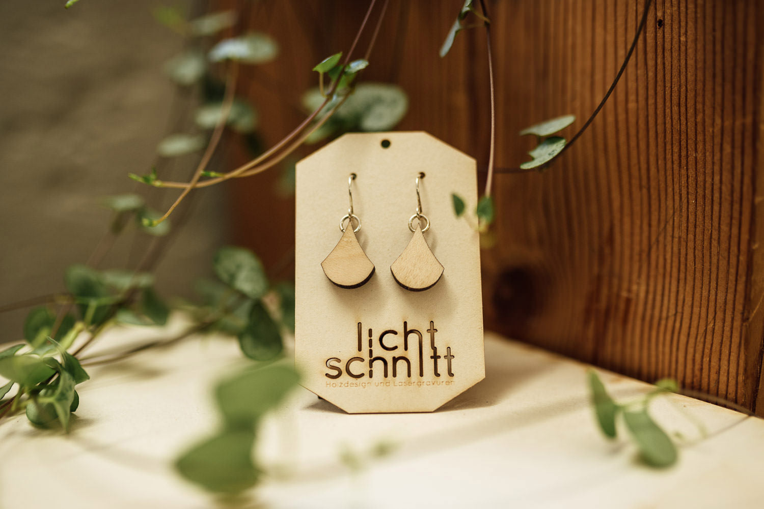 Schlichte, elegant geformte Ohrringe aus Holz.